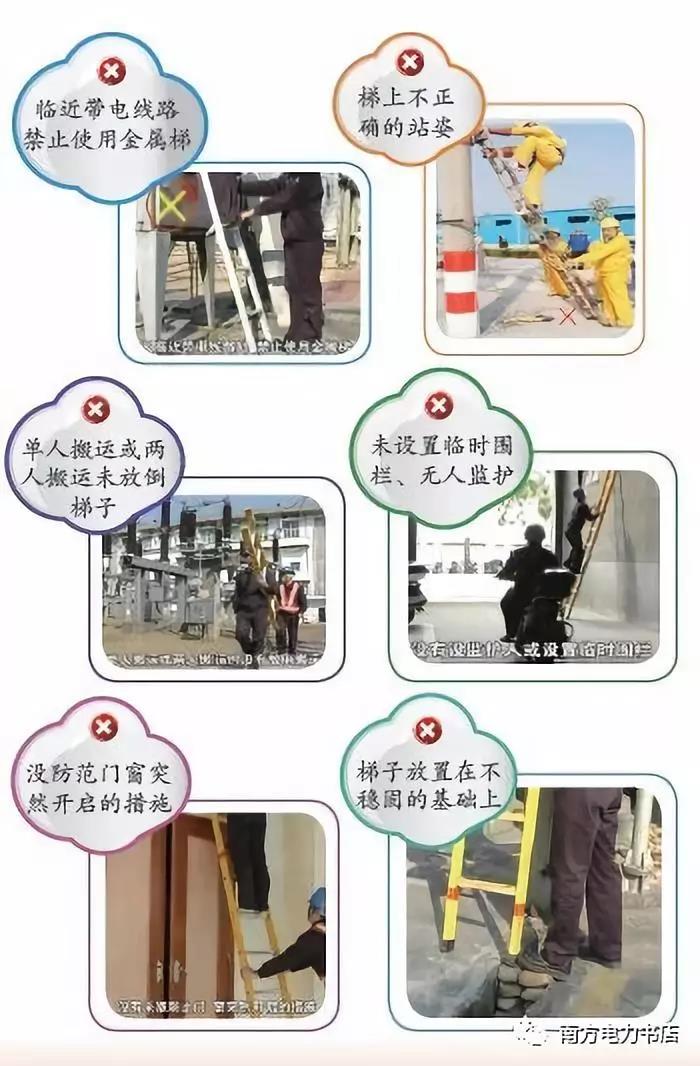 (6)在部分停電或不停電的作業(yè)環(huán)境下,應(yīng)使用絕緣梯。在帶電設(shè)備區(qū)域中,距離運(yùn)行設(shè)備較近時(shí),嚴(yán)禁使用金屬梯。在戶外變電站和高壓室內(nèi)搬動(dòng)梯子、管子等長物,應(yīng)兩人放倒搬運(yùn),并與帶電部分保持足夠的安全距離,以免人身觸電氣設(shè)備發(fā)生事故。
