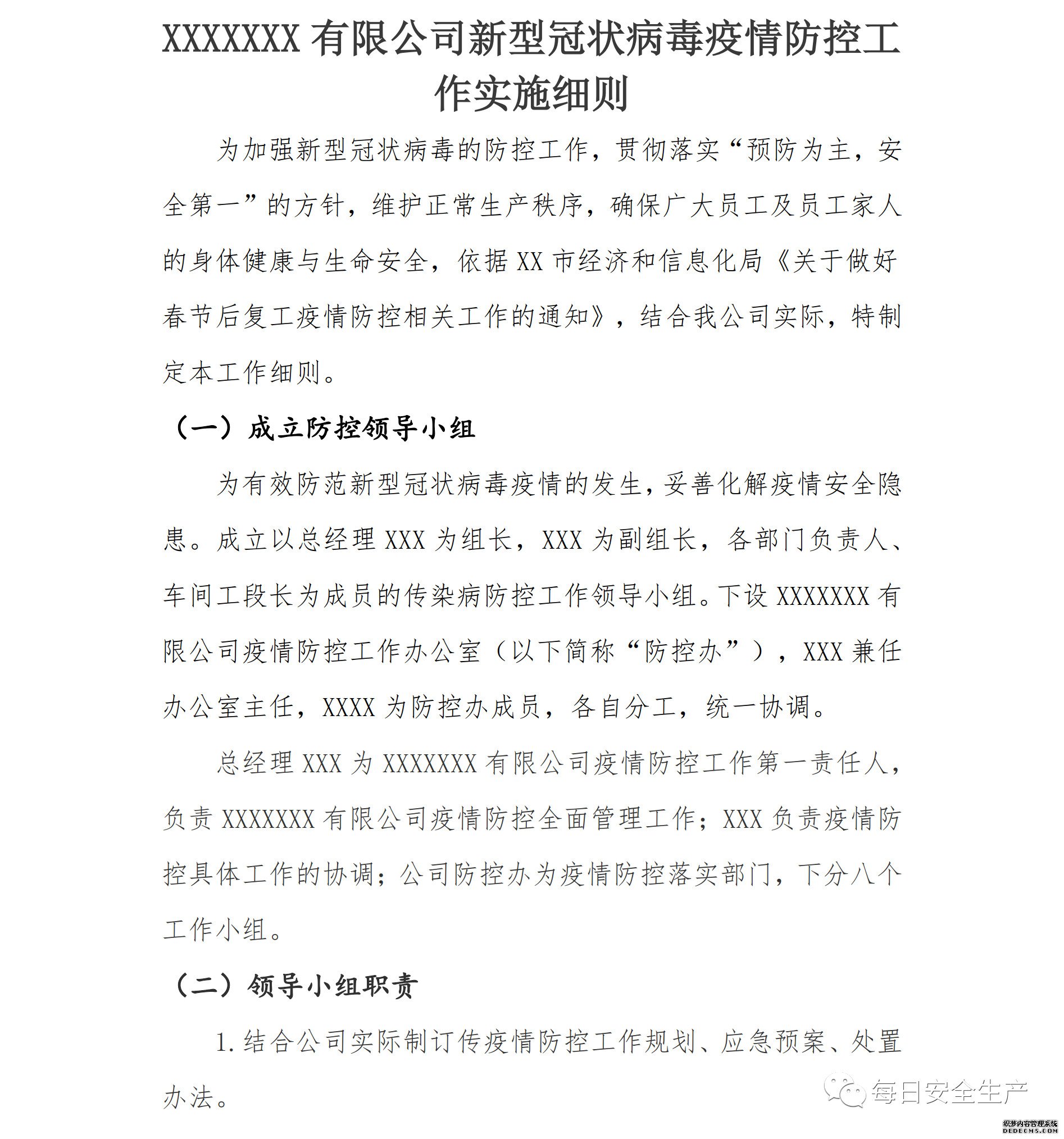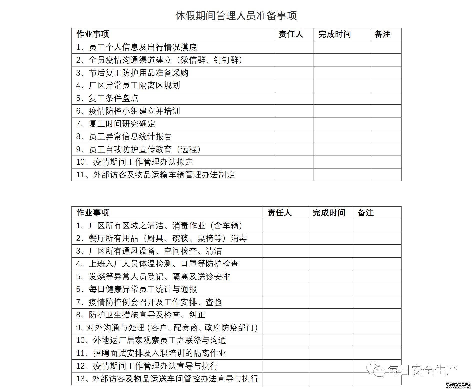 必須制定企業(yè)疫情防控工作方案和復(fù)工生產(chǎn)實(shí)施方案;
