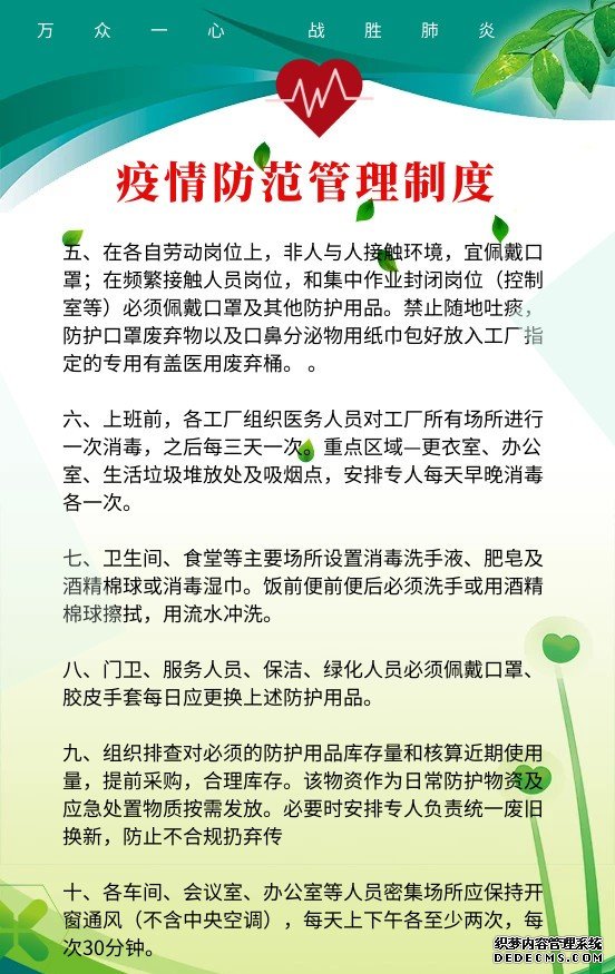當(dāng)前,新型冠狀病毒感染的肺炎疫情嚴(yán)重威脅人民群眾身體健康和生命安全,特別是節(jié)后工業(yè)企業(yè)陸續(xù)復(fù)工復(fù)產(chǎn),容易形成人員集聚,疫情防控形勢(shì)緊迫,責(zé)任重大。企業(yè)必須做好節(jié)后復(fù)工復(fù)產(chǎn)疫情防控工作。