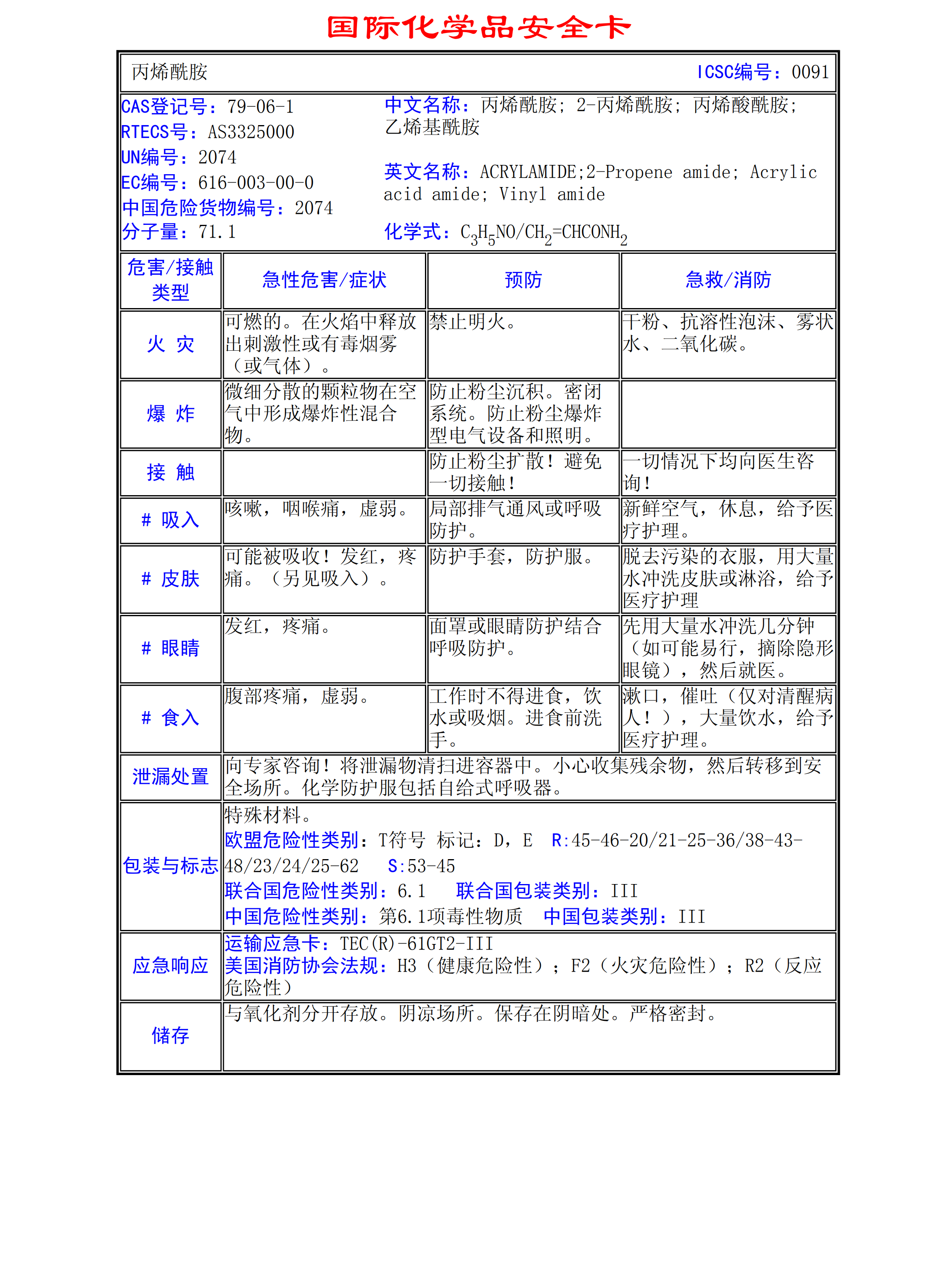 丙烯酰胺MSDS