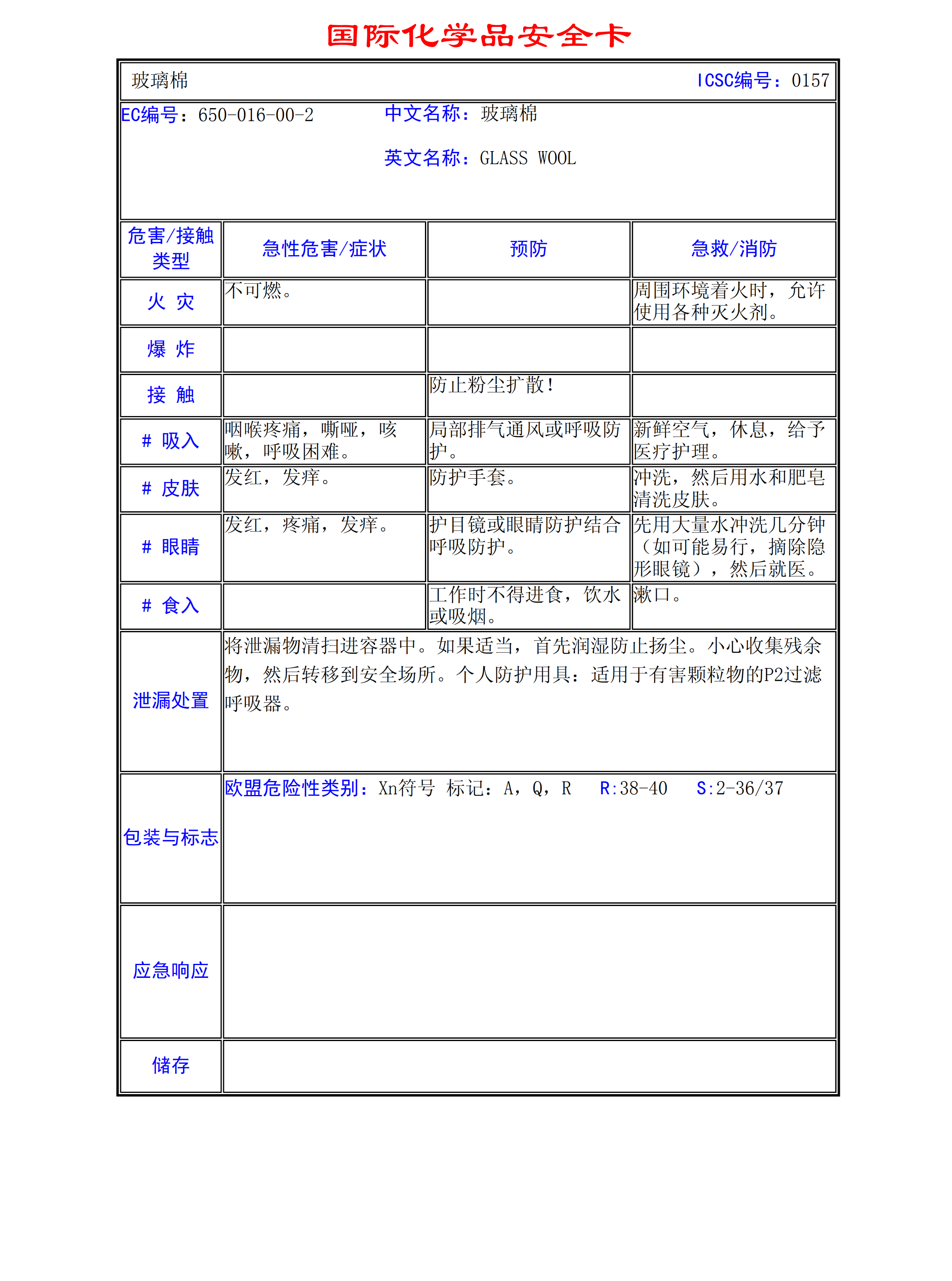 玻璃棉MSDS